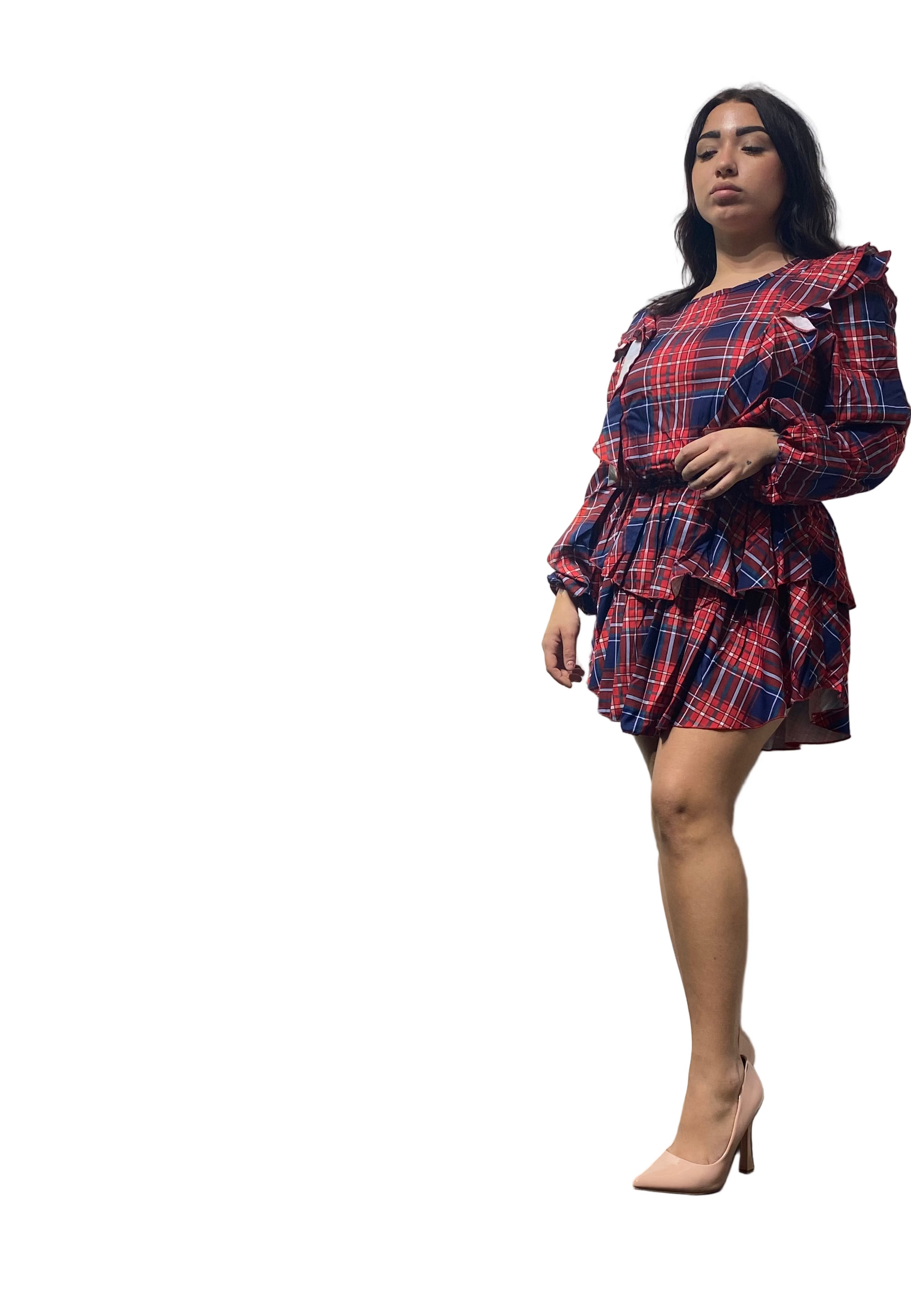 Abito con volant fantasia a quadri